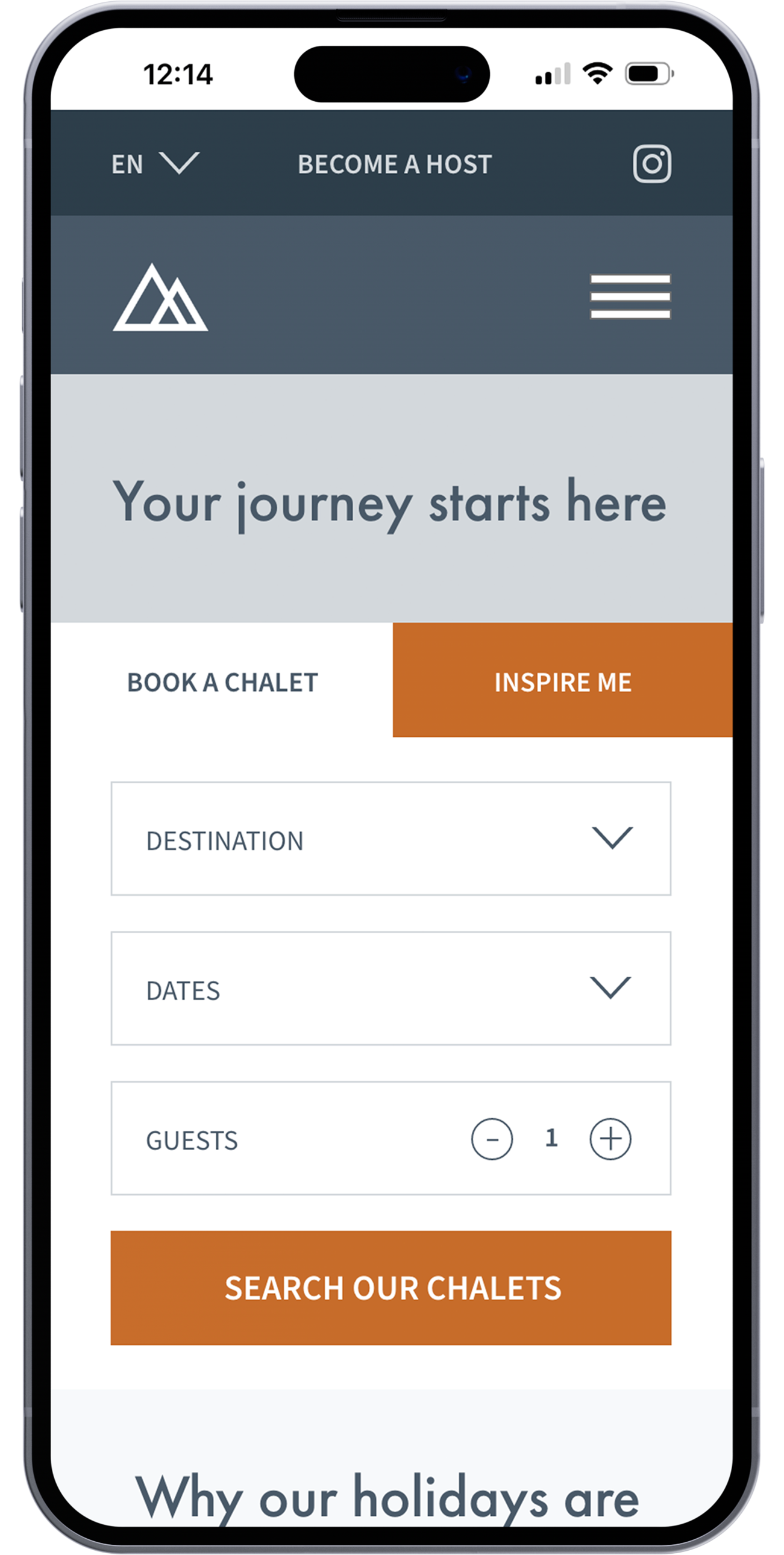 Hütte is a digital travel platform designed to help users find and book beautiful alpine stays with ease and inspiration.