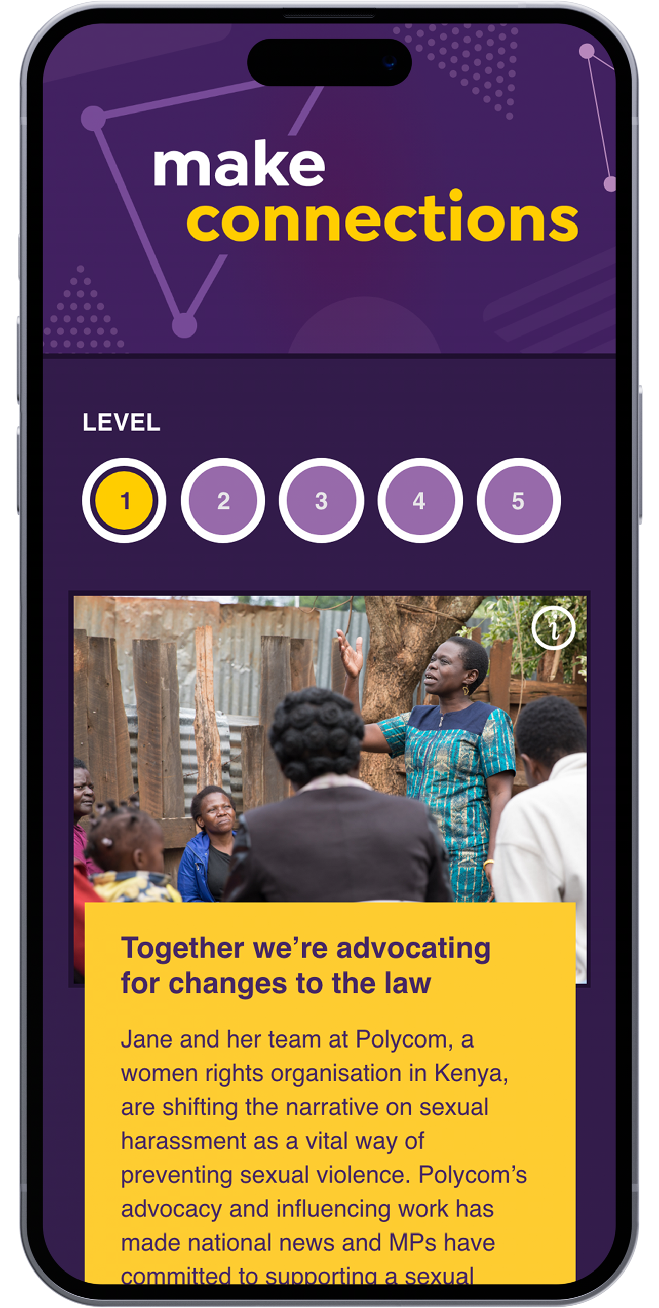 An interactive mobile game and UI system designed to raise awareness of violence against women and girls through storytelling, activism, and discovery.